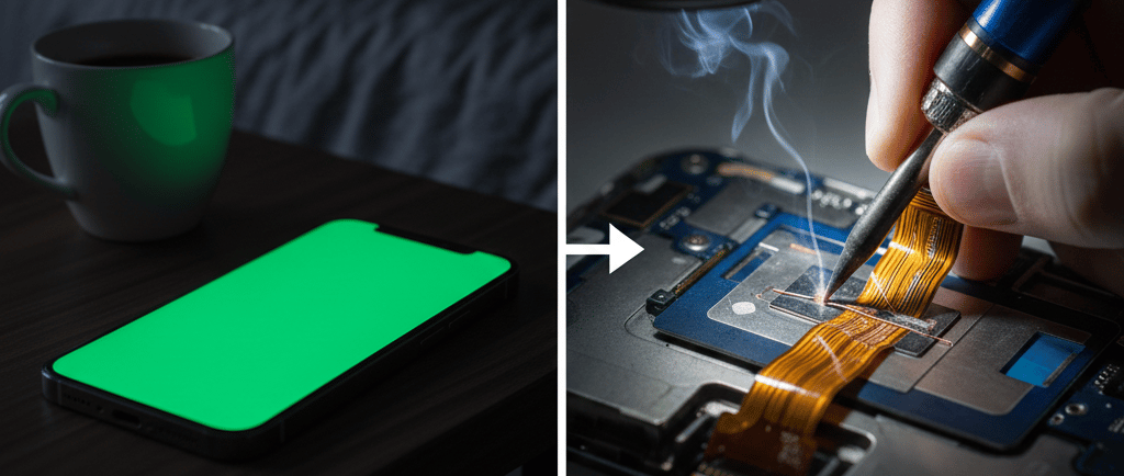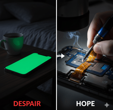Bangun Tidur Layar iPhone 13/14/15 Pro Tiba-Tiba Hijau atau Putih Blank? Jangan Ganti LCD Dulu! Solusi 'Jumper' Hemat Jutaan Rupiah.
