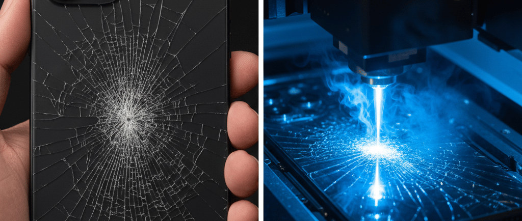 Easy Removal: Setelah lemnya "dihancurkan" oleh laser, pecahan kaca bisa diangkat dengan sangat mudah seperti mengelupas stiker, tanpa paksaan.