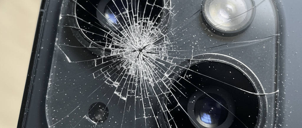 Bodi HP mulus, layar aman. Tapi... Krak! Kaca pelindung kamera belakang (Lens Glass) retak seribu atau pecah berlubang.