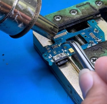 IC Reballing (Pencetakan Kaki Ulang): Jika diagnosa menunjukkan bahwa IC WTR atau CPU masih sehat tetapi kaki timahnya retak akibat jatuh, kami akan menggunakan Blower (Hot Air Rework) untuk mengangkat chip tersebut. Kami bersihkan sisa timah yang retak, lalu kami cetak ulang bola-bola timah baru yang segar (Reballing). Chip dipasang kembali ke posisinya.