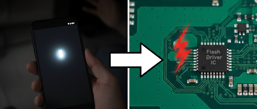 Ini skenario terburuk. Di dalam mesin HP (Mainboard), ada chip kecil bernama IC Flash Driver yang bertugas mengatur tegangan listrik ke lampu. Jika chip ini korslet (kena air) atau terbakar (arus tidak stabil), maka senter akan mati total selamanya, meskipun ikon di layar menyala.