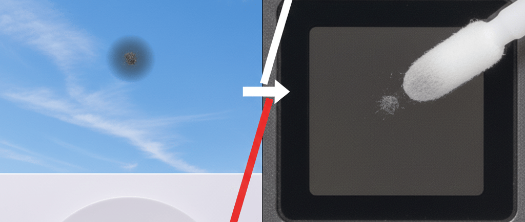 Anda lihat hasilnya. Fotonya bagus, TAPI... Ada "Noda Hitam" (Black Spot) atau bercak abu-abu samar yang mengganggu di bagian tengah atau pinggir foto. Anda pikir kaca kameranya kotor. Anda lap pakai baju sampai kinclong. Anda foto lagi. Nodanya masih ada di posisi yang sama.