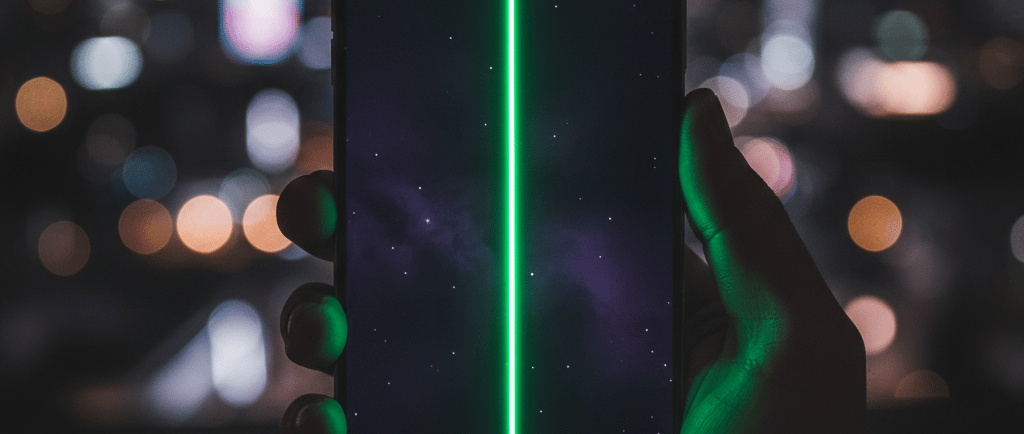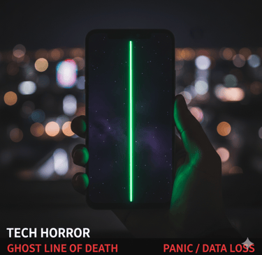 Anda bangun tidur pagi ini, mengecek HP, dan disambut pemandangan horor. Sebuah garis tipis berwarna Hijau Neon(atau kadang Pink/Ungu) muncul secara vertikal membelah layar HP Anda dari atas ke bawah. Warnanya sangat terang, menyilaukan mata, dan Tidak Bisa Hilang meski Anda ganti wallpaper warna hitam sekalipun.