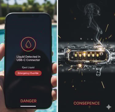 Jika Anda nekat memilih Emergency Override, Anda memaksa iPhone untuk tetap mengalirkan arus listrik (5 Volt hingga 20 Watt pada Fast Charging) melewati port yang basah itu.