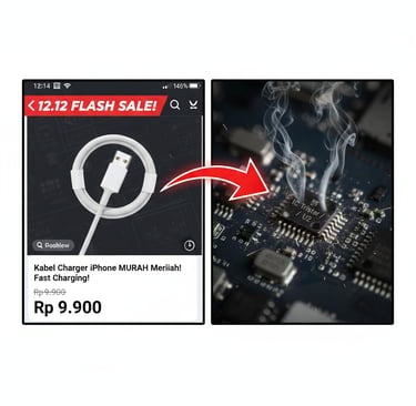 Siapa yang tidak tergiur? Kabel original Apple harganya ratusan ribu. Merek premium pihak ketiga harganya juga masih di atas 100 ribu. Tiba-tiba, di halaman flash sale muncul kabel putih yang mirip asli, diklaim "Original Pabrik", dengan harga cuma Rp 15.000 atau bahkan Rp 9.000.