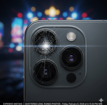 Sabtu Ini Mau Nonton Konser atau Hunting Foto, Tapi Kaca Kamera iPhone Kamu Retak "Spiderweb"? Jangan Cuma Ditutup Isolasi! Serpihan Kaca Mikro Sedang Mengincar Sensor Jutaan Rupiah di Dalamnya!
