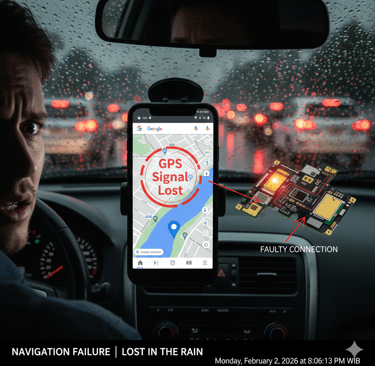 2. Korosi "Keringat Jahat" Posisi antena GPS seringkali ada di bagian atas HP (dekat kuping saat telepon). Uap keringat atau air hujan bisa merembes masuk ke celah casing dan menyebabkan Oksidasi (Karat Tipis) pada lempengan tembaga antena. Lapisan karat ini menghalangi arus listrik lemah dari satelit. Sinyal jadi lemot atau hilang timbul.