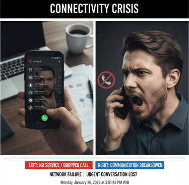 Bayangkan Anda baru sampai kantor. Mau buka WhatsApp Web, butuh koneksi HP. Mau telepon klien, butuh pulsa seluler. Tapi lihat bar sinyal di pojok atas layar Android Anda. Bukannya batang....