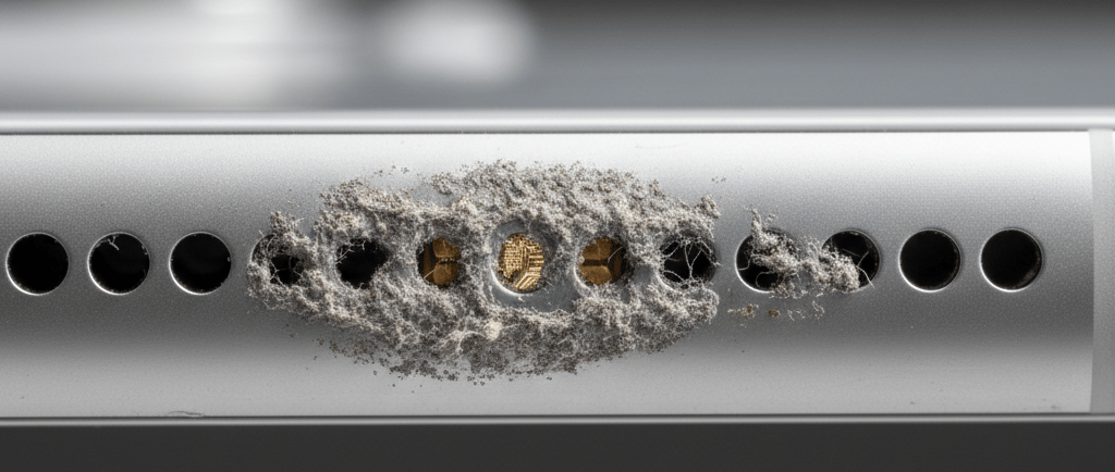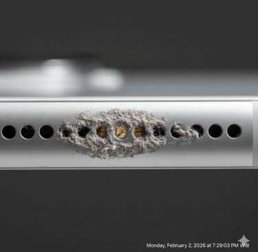 Selamat datang di masalah klasik yang berevolusi: Penyumbatan Mesh Akustik. Di seri iPhone 16 dan 17, Apple menggunakan jaring (mesh) anti-air yang sangat rapat untuk mencapai rating IP68. Namun, di kota seperti Surabaya yang berdebu dan lembap, fitur pelindung ini justru menjadi bumerang.