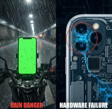 Untuk iPhone yang sudah berumur lebih dari 1 tahun (iPhone 12, 13, 14, bahkan 15 awal), segel itu sudah tidak rapat lagi. Air hujan yang bersifat asam dan memiliki tekanan tinggi (saat naik motor) bisa dengan mudah menembus celah speaker atas atau celah tombol volume.