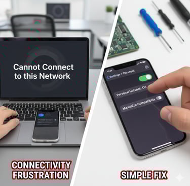 Sayangnya, banyak laptop kantor atau adapter WiFi lama yang HANYA bisa membaca frekuensi 2.4GHz atau keamanan WPA2. Mereka "kaget" dan menolak koneksi dari iPhone.